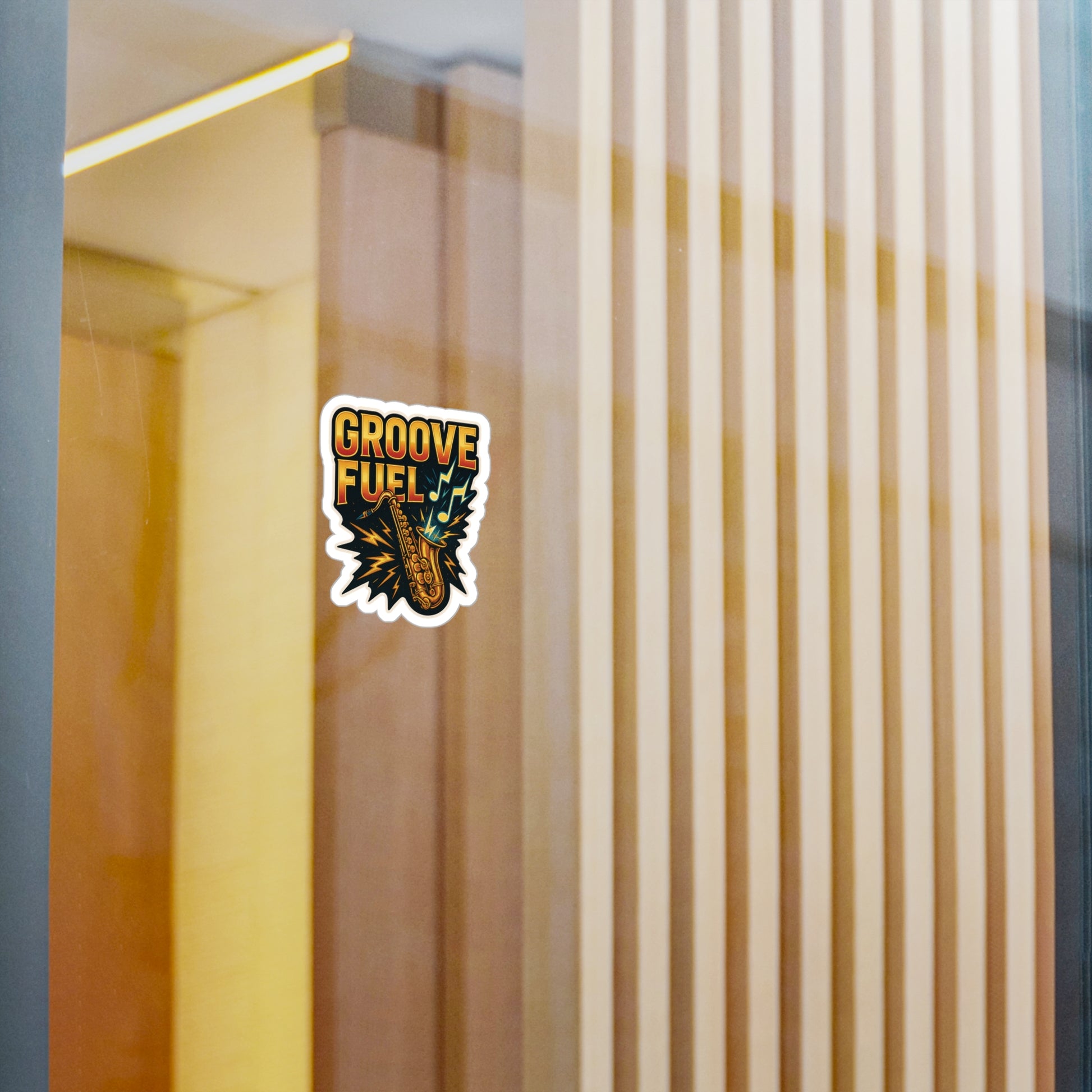 Groove Fuel Sticker – Saxophone Music Vinyl Decal for Musicians, Jazz Lovers & Band Students