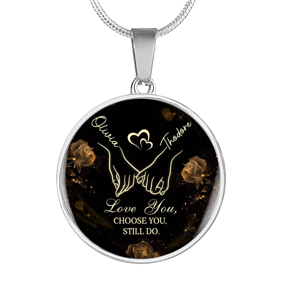 Putting your name and your loved one’s name above the two hands is what makes this necklace truly personal.