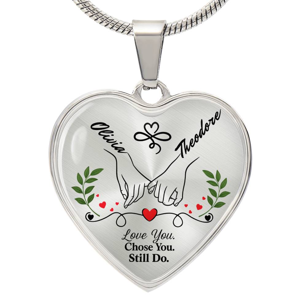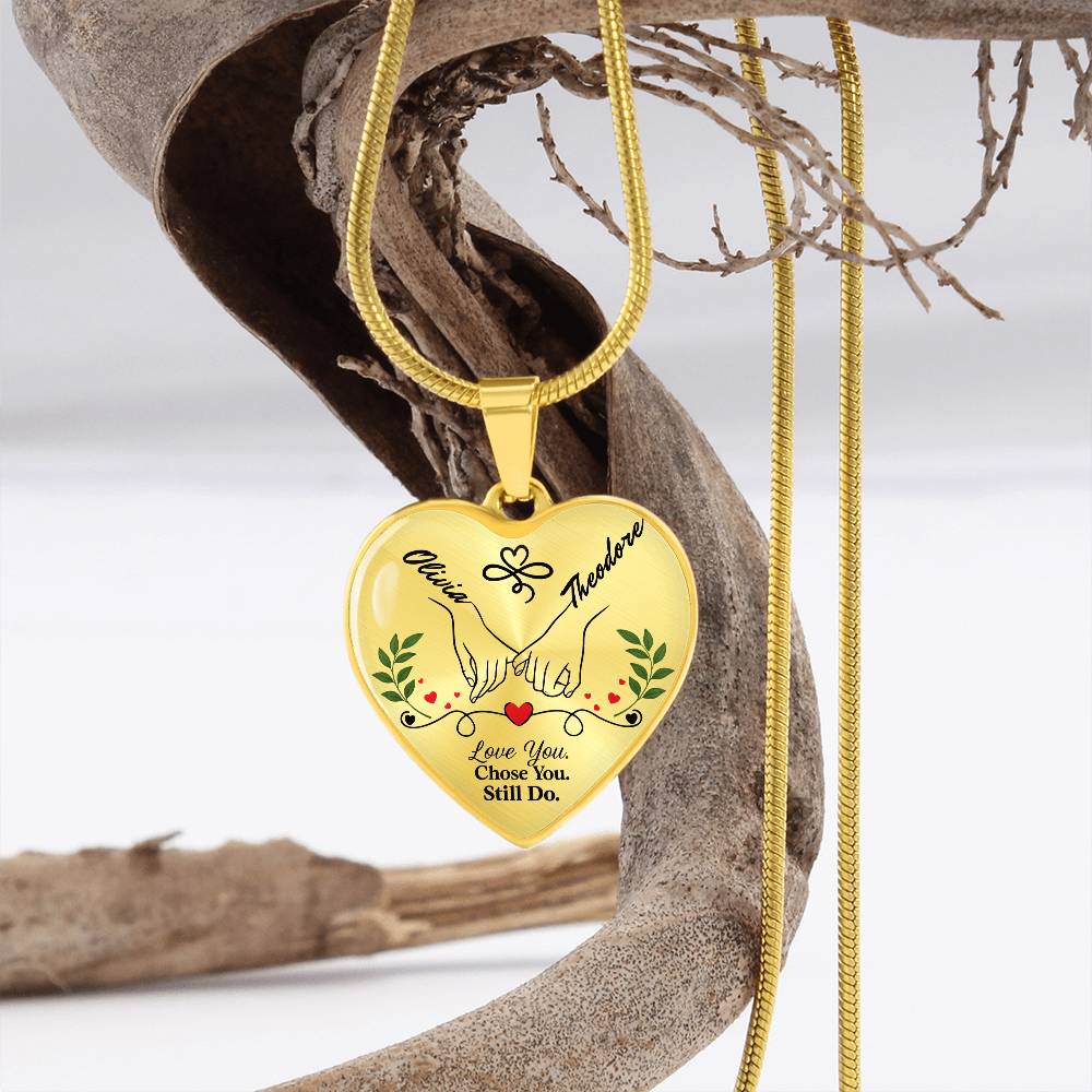 Putting your name and your loved one’s name above the two hands is what makes this necklace truly personal.